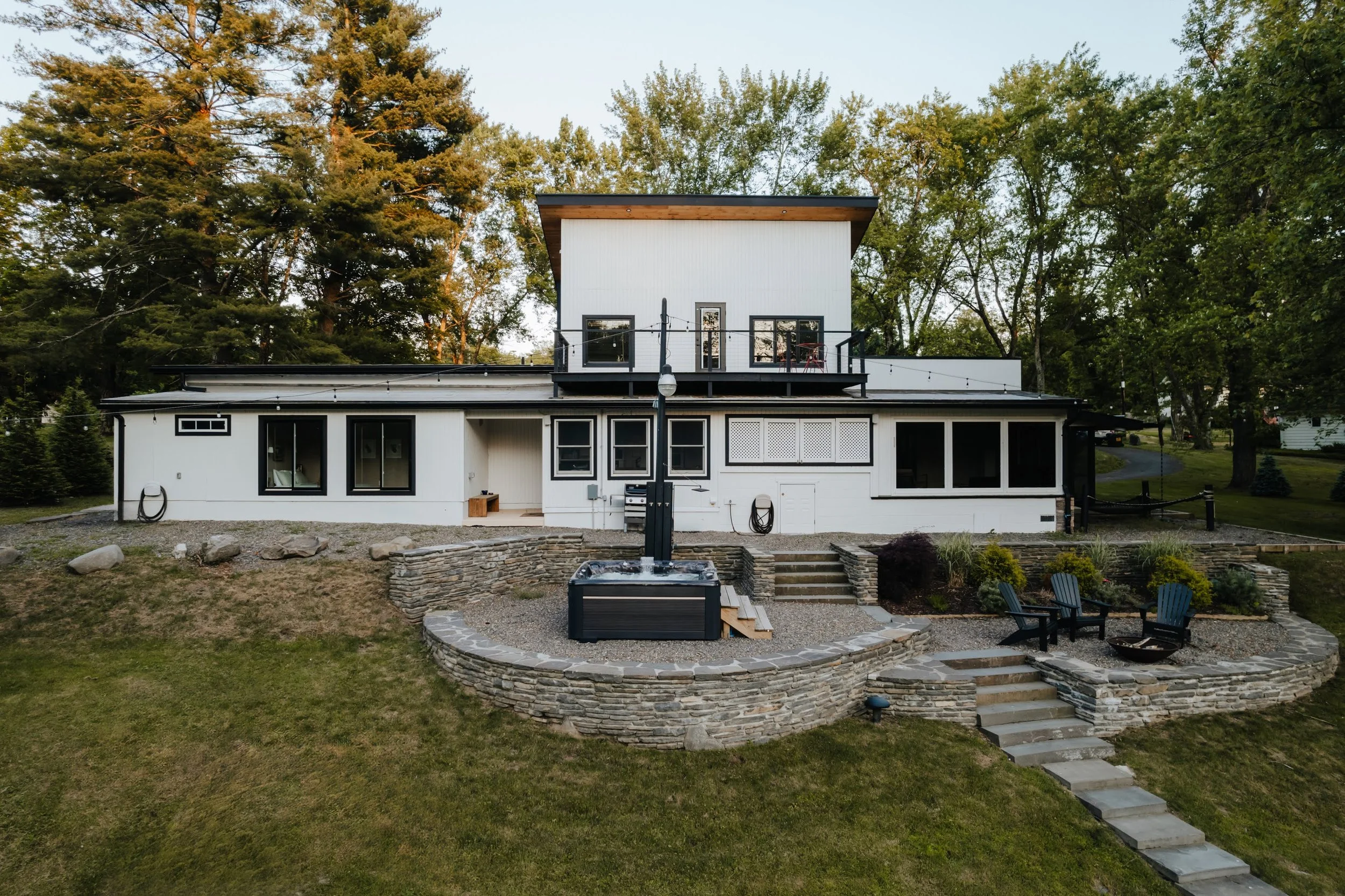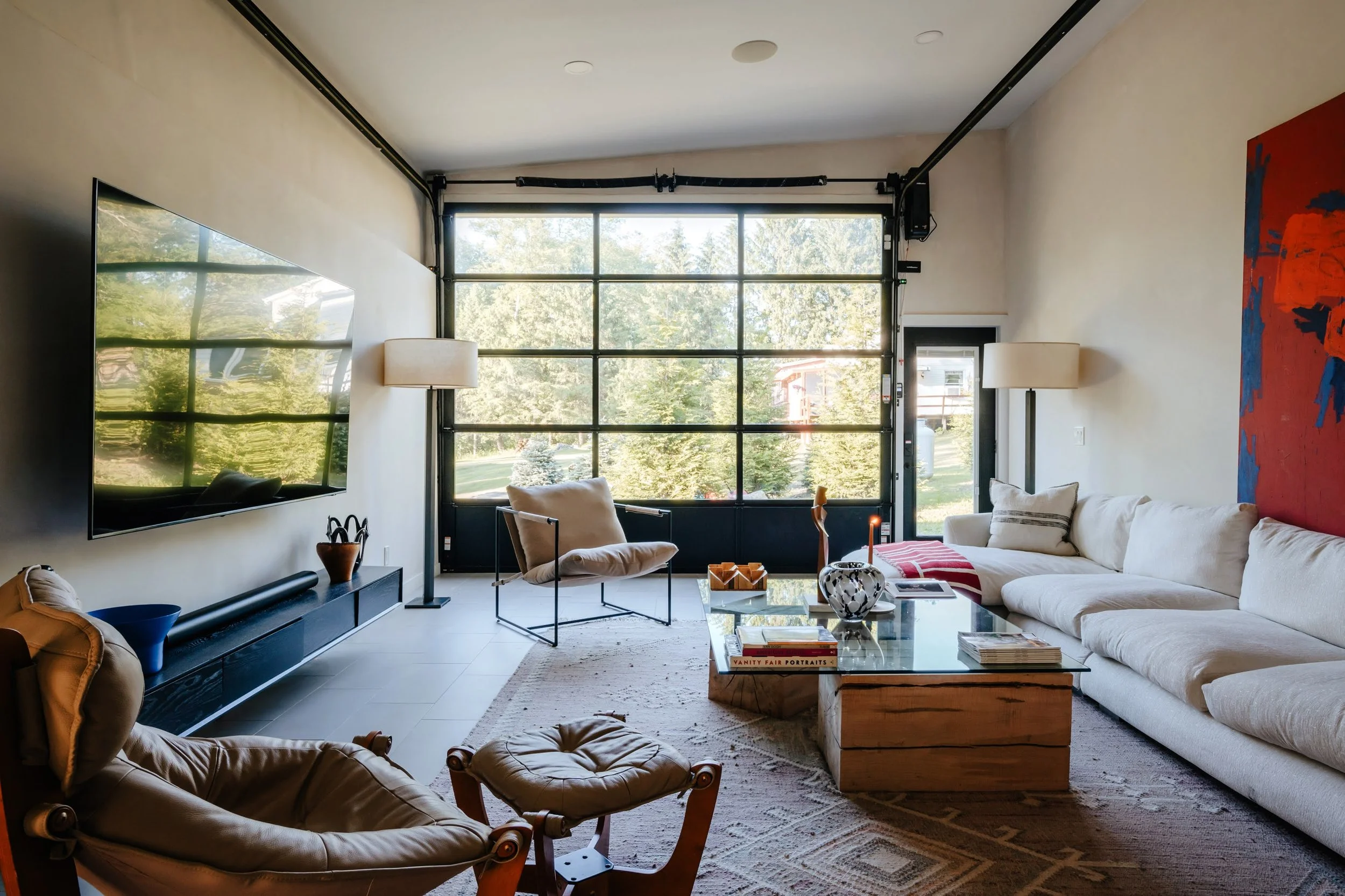 Previous owner built hot rods and in an ode to him 1 of the garages was converted into a living room with a glass garage door.