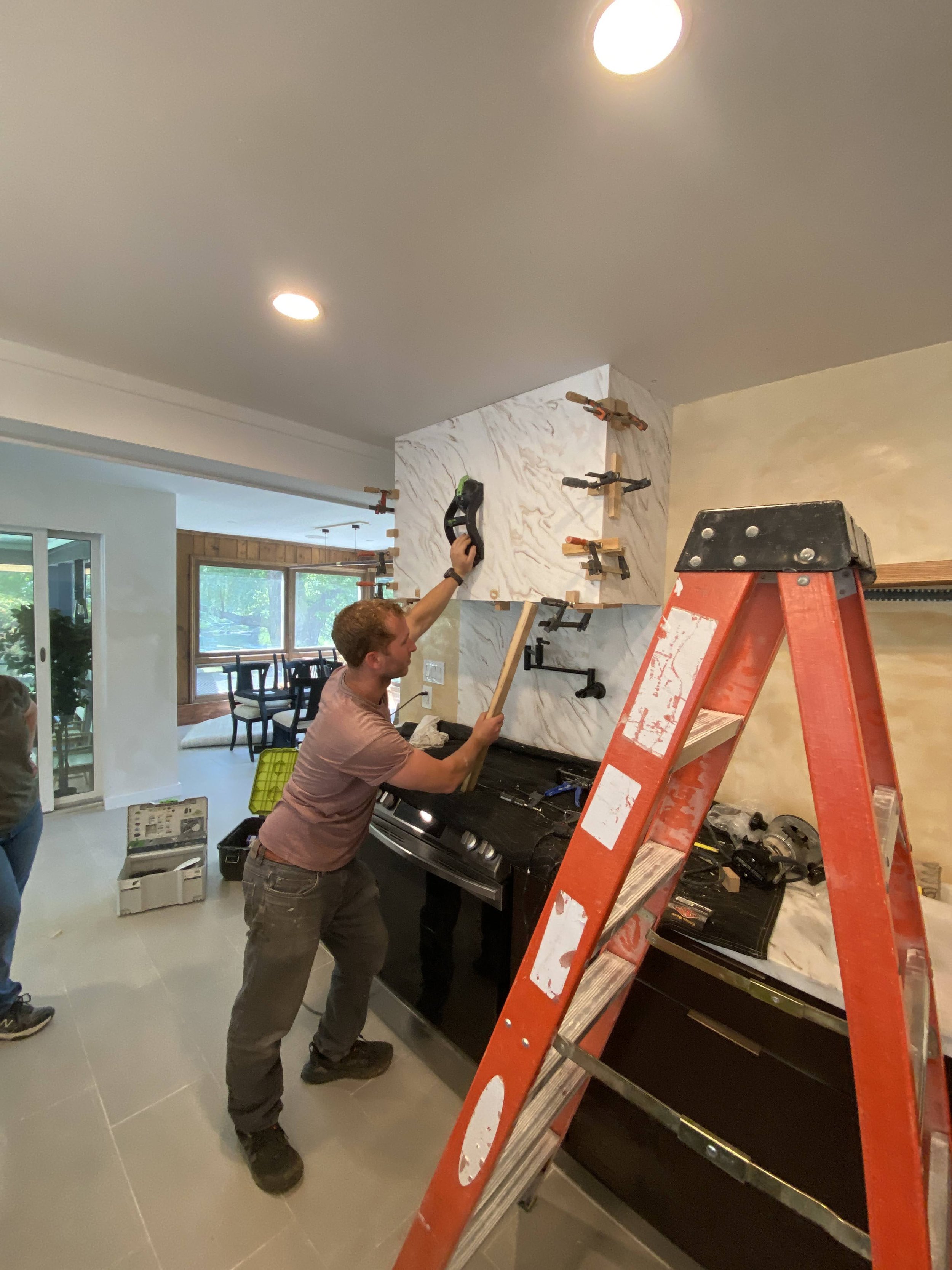 Mostly working with a team of 1 to 3 and bringing in subs for electrical, concrete, plumbing and drywall. We did a full gut and new structural components where needed. This was 5 rooms within less than 1000 sq. ft.